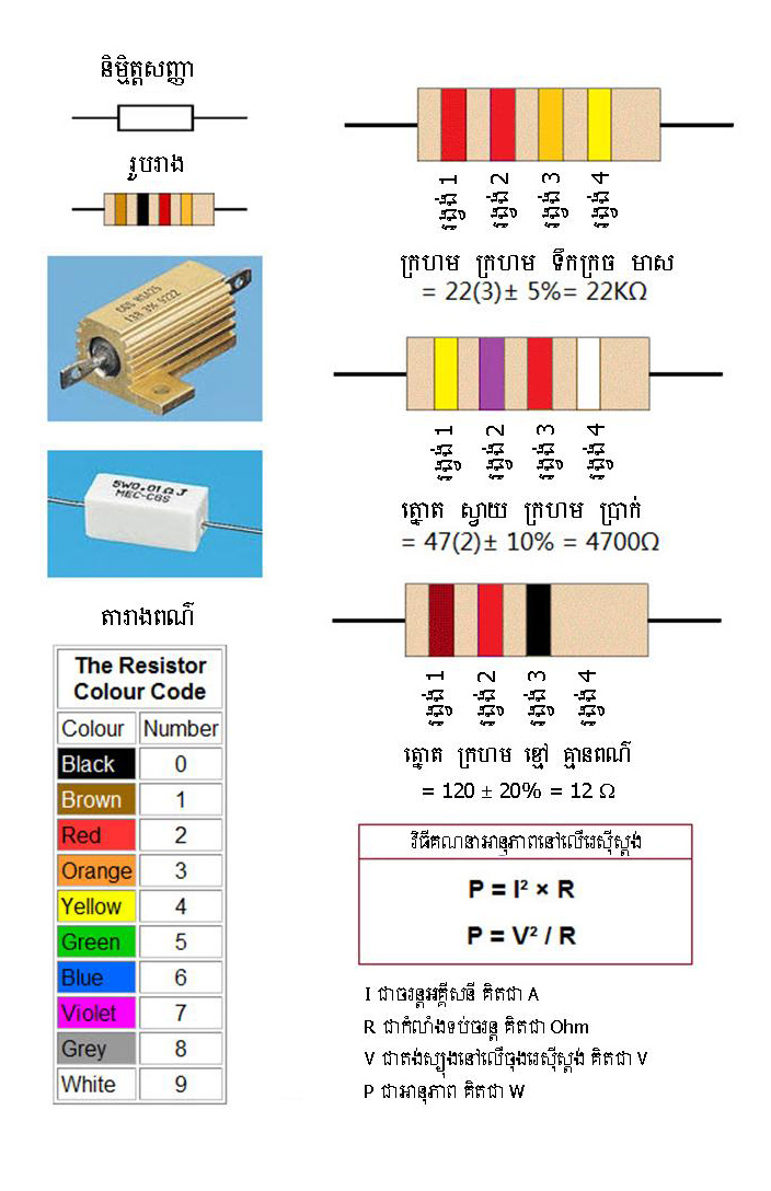 រេស៊ីស្តង់ជាគ្រឿងបរិក្ខាដែលនិយមប្រើបំផុត ។ មានប៉ារ៉ាម៉ែត្របីផ្សាភ្ជាប់ទៅនឹងរេស៊ីស្តង់មួយ នោះគឺ : តង់ស្យុង V វាស់នៅលើចុងទាំងសងខាងលើជើងរេស៊ីស្តង់មួយ , អាំងតង់ស៊ីតេ I រត់កាត់តួរេស៊ីស្តង់ និងកំលាំងទប់ចរន្ត ( Ohm ) របស់រេស៊ីស្តង់ ។ ច្បាប់អូមនឹងបង្ហាញអោយឃើញពីទំនាក់ទំនងរវាងប៉ារ៉ាម៉ែត្រទាំងបីនេះ ។ នោះគឺជាច្បាប់គ្រិះសំខាន់មួយសំរាប់មុខវិជ្ជាអេឡិចត្រូនិក ដែលអ្នកណាក៍ត្រូវតែដឹងដែរ ។