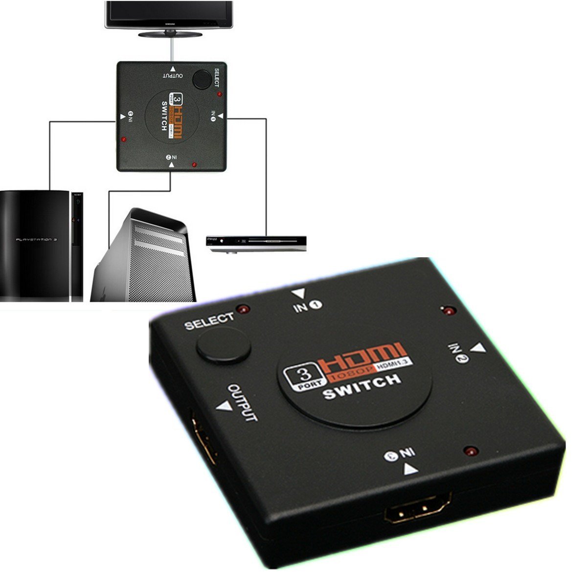 1 x 3 Port HDMI Switch Splitter Adaptor For HDTV HD DVD PS3